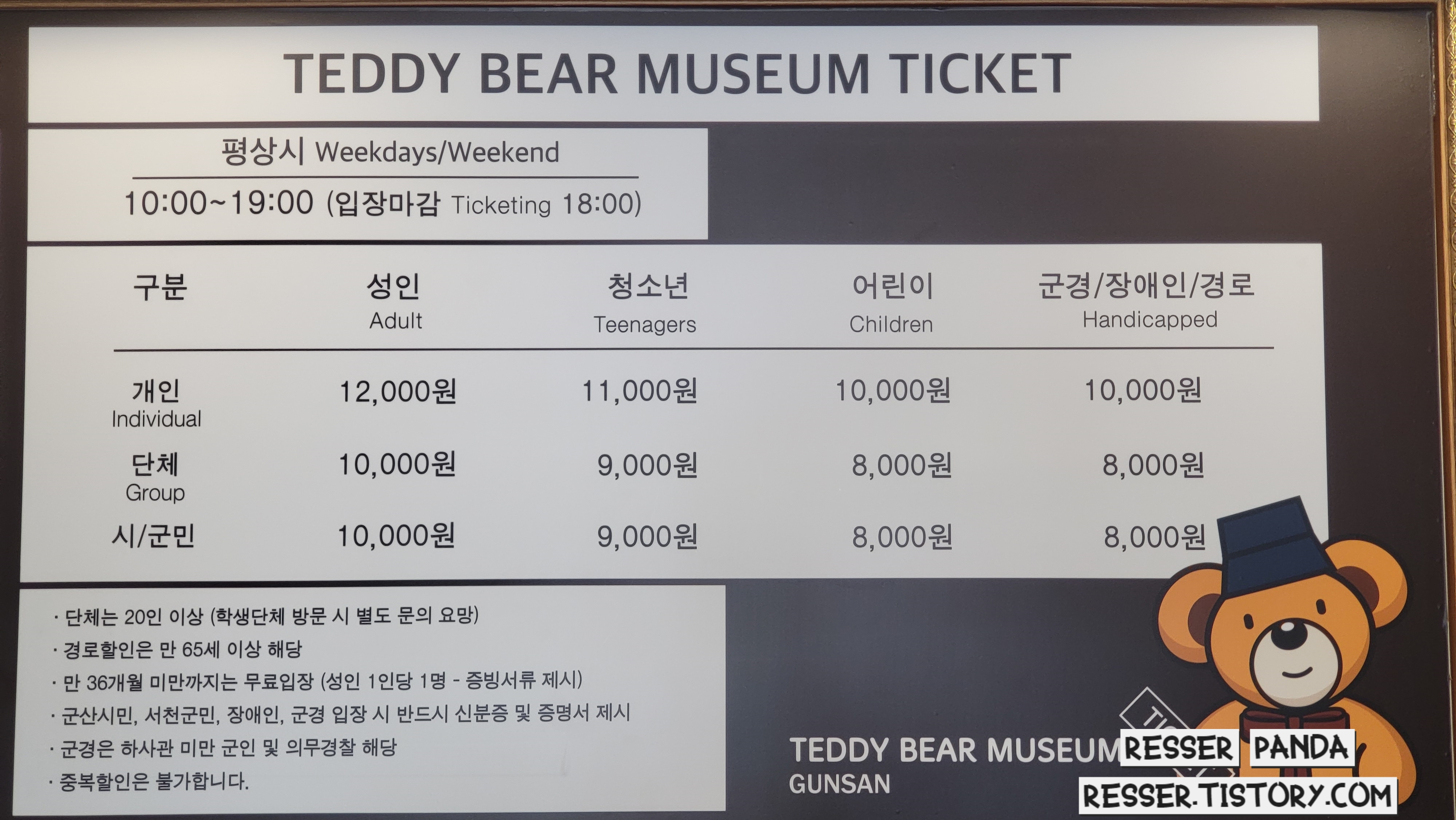 성인 1.2만원이다 군산테디베어 뮤지엄 티켓가격 입장료는 살짝 비싼 느낌이기도하다만 뭐 아깝지 않았다